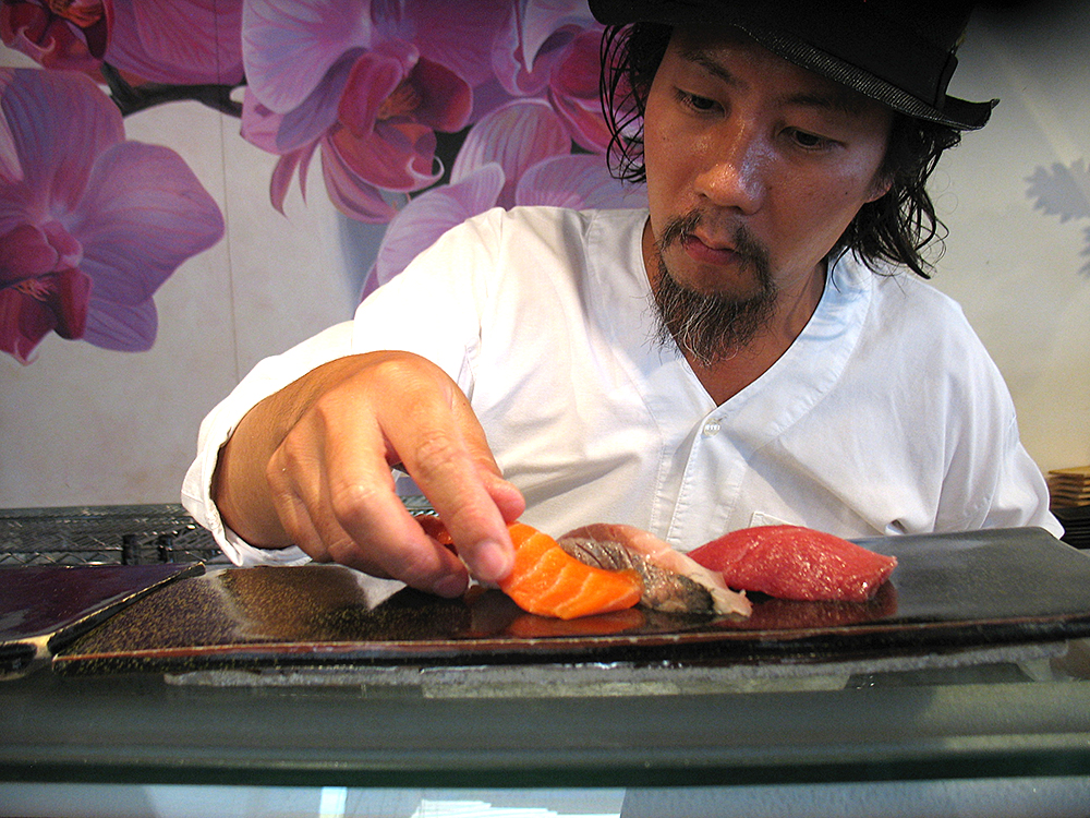 Satoshi Kiyokawa Published August 12, 2013, 1:42 at 1000 × 750 in Satoshi Kiyokawa Satoshi Kiyokawa preparing our nigiri platter (photograph posted by permission).