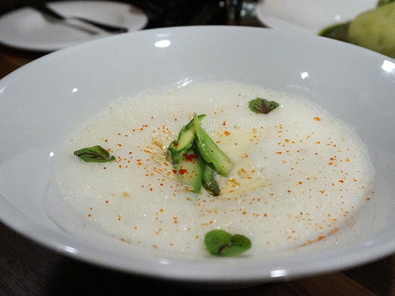 Brasserie Zentral – White Asparagus Soup Published May 29, 2014, 22:29 at 800 × 600 in Brasserie Zentral – White Asparagus Soup First Course. 1. White Asparagus Cream Soup, Shaved Green Asaparagus, Hazelnut. This was rather good. Light and frothy more than soupy and very well balanced.