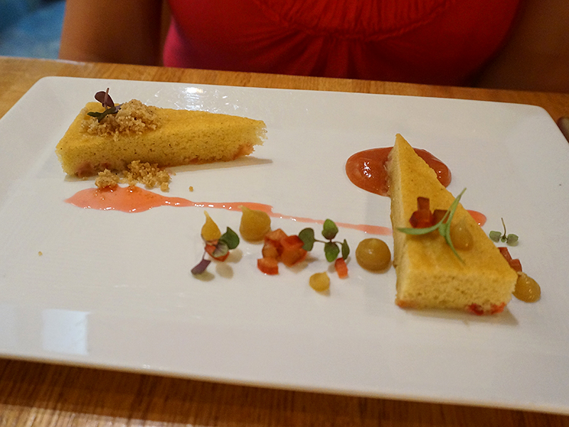 Piccolo: Brown Butter Cake Published July 22, 2014, 14:35 at 800 × 600 in Piccolo: Brown Butter Cake Fifth Course Brown butter cake with rhubarb and caramelized fennel. The missus got this and pronounced it very good. I only had a small bite and agreed.