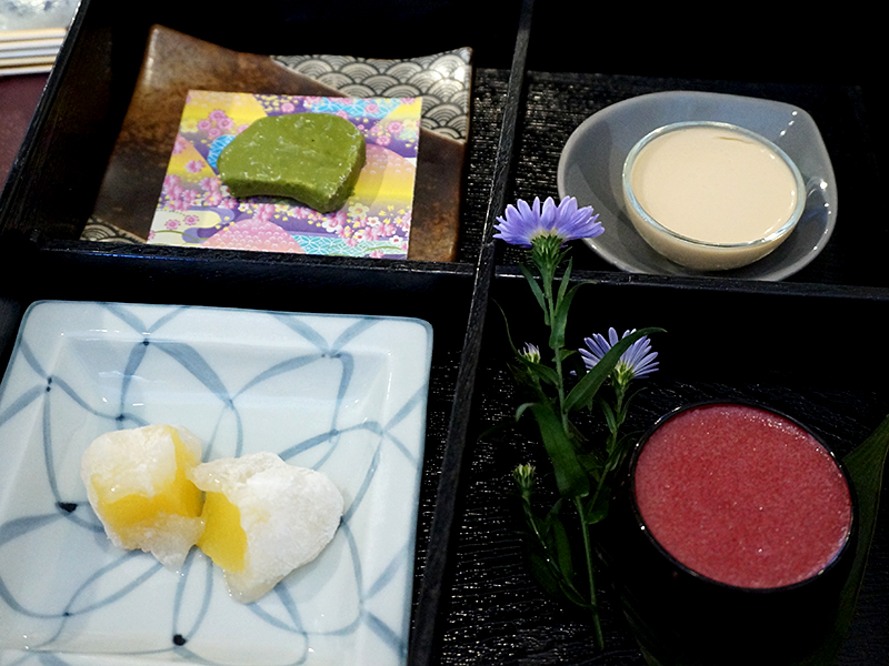 …a large box was placed in front of us; we opened it to find this exquisite quartet: green tea rusk; Earl Grey pannacotta; fresh house-made mochi with pineapple compote; and raspberry “cheesecake”. Four different textures, four complementary flavours—a lovely end to a great meal. The mochi in particular was just great—light to the point of being ethereal and the compote was lovely. And those who know my hatred of Earl Grey tea will be shocked to hear that the pannacotta was great too. This quartet is the best dessert course we’ve had here by far and put to shame the desserts we’ve been eating at the better high-end restaurants in the Twin Cities.