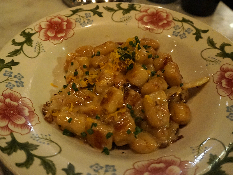 Gnocchi with Cauliflower and Orange. This was very good. The gnocchi were just lovely. The smoky cauliflower starts out delicately and then builds–the orange is likewise subtly deployed as an accent. It was quite heavy though with a fair bit of cream in the sauce–a half portion of this, following the cold meat plate was all but enough for me.