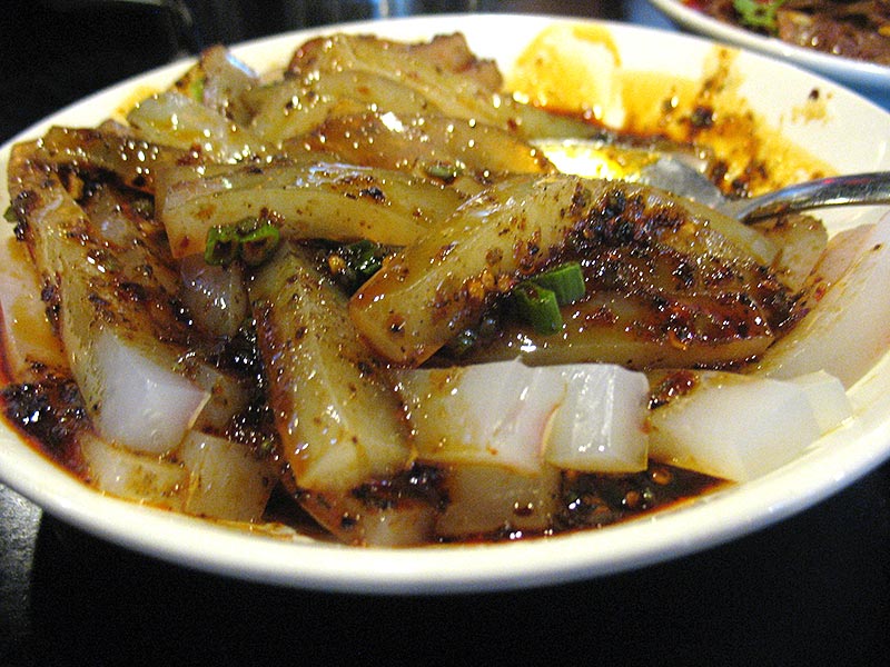 Cold Bean Jelly Published December 29, 2013, 14:35 at 800 × 600 in Cold Bean Jelly Cold Bean Jelly: From the appetizers section. Bean jelly “noodles” tossed in a hot and sweet sauce.
