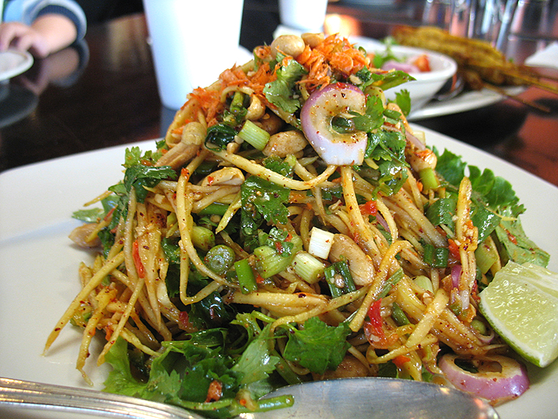 Mango Salad Published November 24, 2013, 10:00 at 800 × 600 in Mango Salad Mango Salad: Strips of mango and dried shrimps tossed with a tangy lime dressing. Wonderful balance of sweet, sour, salty and hot flavours and a kick like a mule’s. The best dish I’ve eaten in Minnesota in at least 6 months.