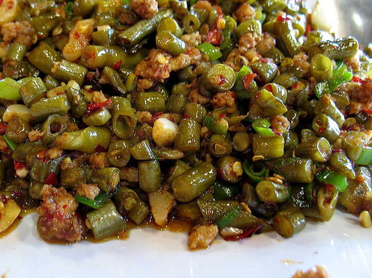 Pickled Long Beans with Pork Published August 13, 2013, 0:30 at 750 × 562 in Pickled Long Beans with Pork Pickled Long Beans with Ground Pork: The pickled beans are chopped to pretty much the same size as the bits of ground pork. Very tangy and very good and a completely new flavour for me in the context of Chinese food.