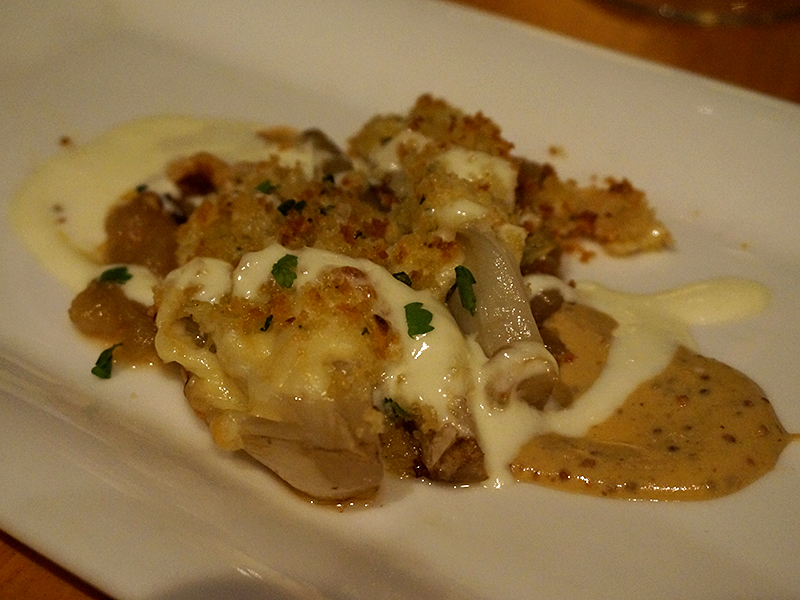Slow Roasted Endive, alpine style cheese, breadcrumbs & smoked mustard: This was mine. I know, roasted endive doesn’t seem terribly promising but this was rather nice and may have been the best of the four first courses. Caramelized, sweet endive with a nice crunch from the breadcrumbs and the mustard was great too. Wonderful balance of textures and flavours.