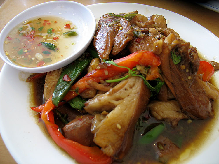 Pork leg with chilli-garlic Published August 12, 2013, 1:20 at 750 × 563 in Pork leg with chilli-garlic Pork Leg with Chilli Garlic. Yet another dish from the “specials” section incorporating very fatty pork. No rind on this one and the meat was generally far more succulent. Again, very good but I preferred last week’s more pungent pork dish.