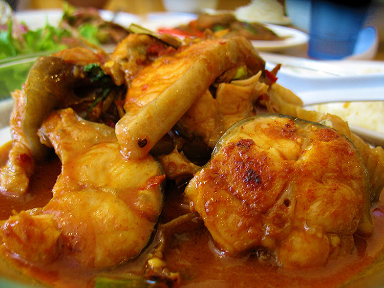 Soft Catfish. Another preparation of sliced catfish on the bone in red curry. However, the catfish is not fried first and the curry is quite different in flavour and consistency (there’s a lot more sauce). Very nice but I preferred the crispy catfish by far.